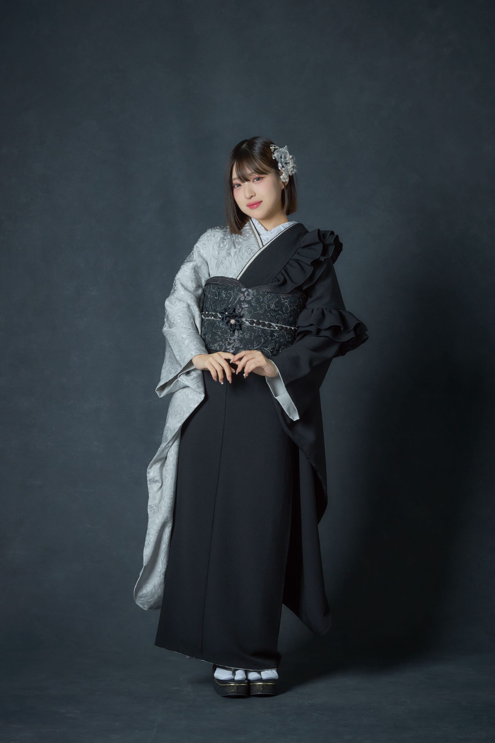 | 説明 | 黒とアイスグレーの片身変わりという大胆なデザインで魅せるこの振袖は、柄なしの潔さとフリフリ感が最強にマッチしたモード系アイテム。 控えめなアイスグレー部分にはさりげなくバラの意匠が織り込まれており、シンプルながらも上品なアクセントを添えています。 「無地しか勝たん!」というZ世代のトレンドに寄り添いながら、片身変わりのデザインで個性をしっかりアピール。 成人式や前撮りのシーンでは、そのモードな雰囲気とフリフリ感が絶妙に映え、写真映えもバツグンです。 シンプルだけどただの無地じゃない、最先端のクールな着こなしを叶えたいあなたにぴったりの一枚。 周りと差をつける大人モードスタイルで、自分らしさを表現しましょう。 ※小物のグレードによって価格が前後する場合がございます。あらかじめご了承ください。 |