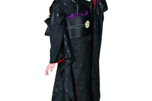 光沢感のある黒地に、繊細に染め上げられた古典の花々が静かに輝く、まるで無地感覚の超モード系振袖です。